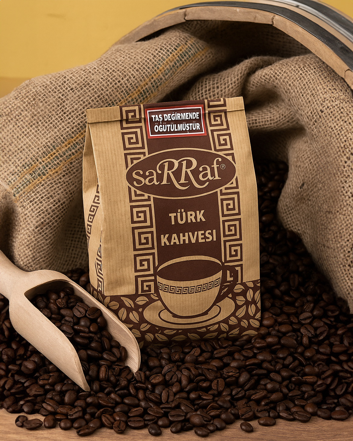Taş Değirmende Öğütülmüş, Taze Kavrulmuş Sarraf Türk Kahvesi.; ; Ürün içeriğinde 90Gr / 36 Adet Sarraf Türk Kahvesi vardır.; ; Tipi orta kavrulmuş.; Dercesi ince.; Brezilya menşeili kahve çekirdekleri.; ; Türk damak tadına en uygun elde edilebilecek en yüksek dereceye ve kaliteliye sahip arabica kahve çekirdekleriyle hazırlanmıştır.; ; Keyifle içebilmeniz için kalite ve geleneğe önem veren firmamız, kahvenin koku ve aromasının en yüksek şekilde ortaya çıkmasını sağlayan metotlarla kavrulmuş ve öğütülmüştür.;